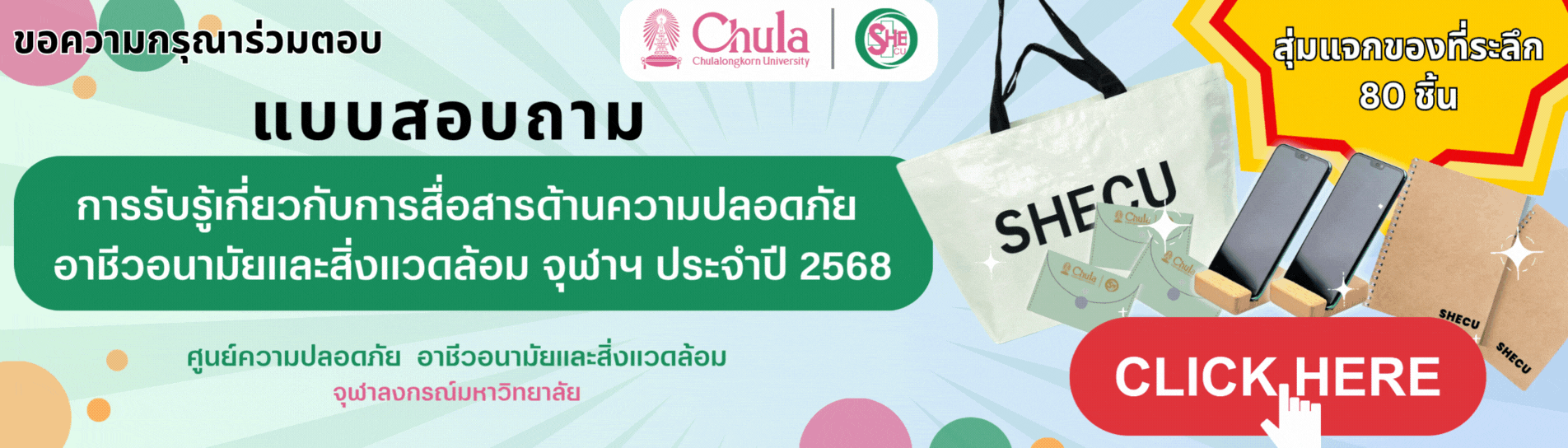 ร่วมตอบแบบสอบถามสำรวจความคิดเห็นด้านการสื่อสารความปลอดภัยฯ ของ SHECU ลุ้นรับของที่ระลึก 80 รางวัล