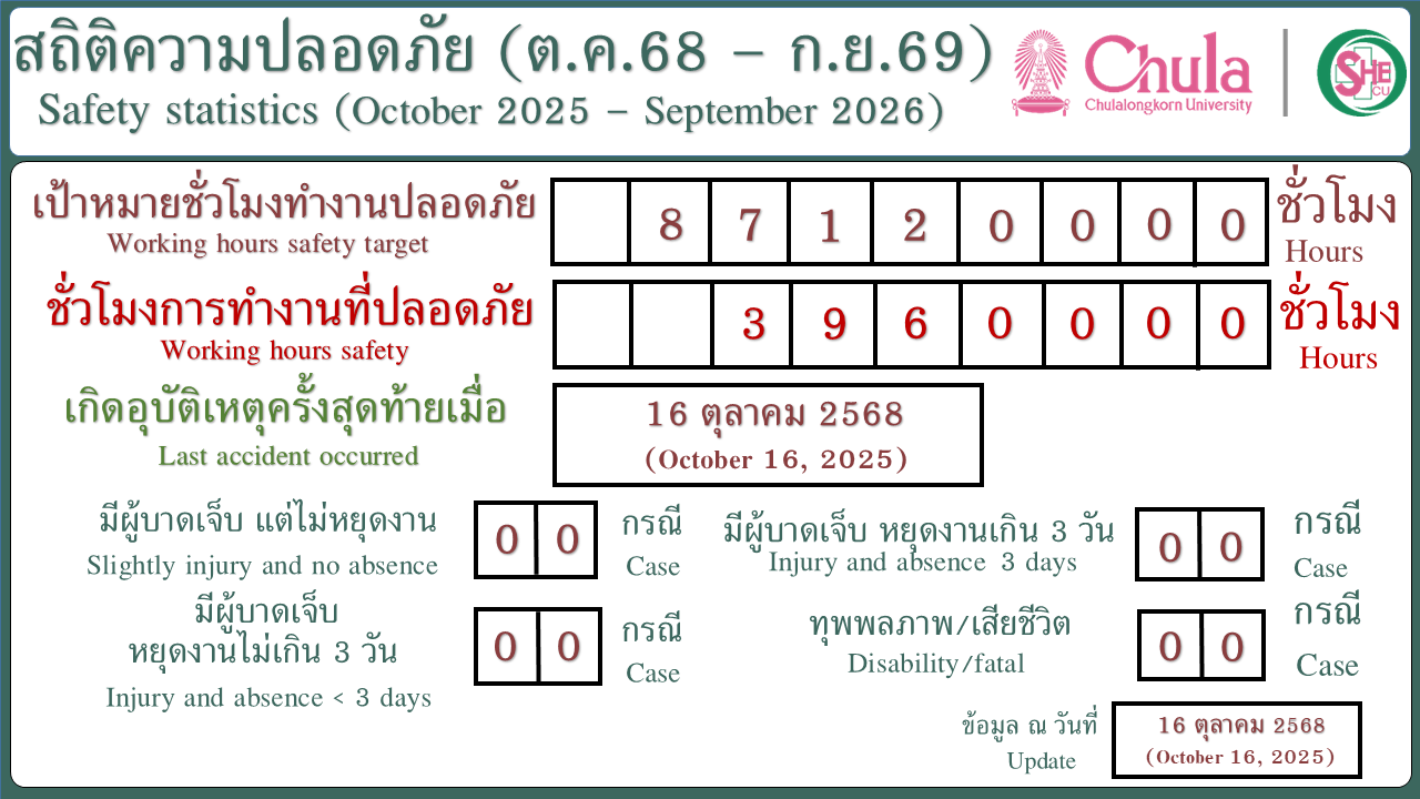 สรุปสถิติความปลอดภัย จุฬาลงกรณ์มหาวิทยาลัย (ต.ค.68 - ก.ย. 69)