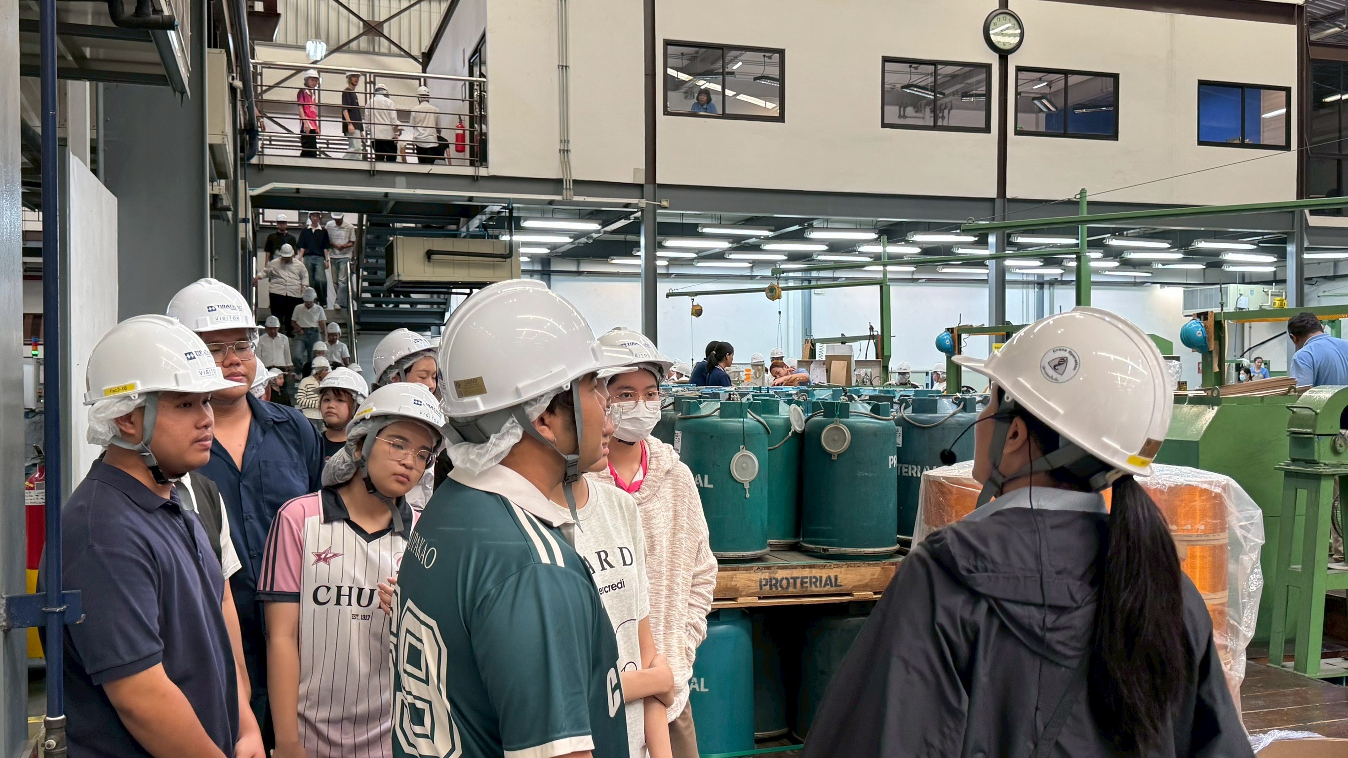 วันที่ 30 ตุลาคม 2568 เวลา 13.00-16.00 น.ศูนย์ความปลอดภัย อาชีวอนามัยและสิ่งแวดล้อม จุฬาลงกรณ์มหาวิทยาลัย (ศปอส.- SHECU) ร่วมกับศูนย์การศึกษาทั่วไป จุฬาลงกรณ์มหาวิทยาลัย นำนิสิตวิชาการศึกษาทั่วไปหมวดสหศาสตร์ รายวิชา 0295128 ความปลอดภัยในการทำงาน(Safe At work) นำโดย ดร.องอาจ ธเนศนิตย์อาจารย์ประจำรายวิชาและเจ้าหน้าที่บริการการศึกษา จากศูนย์ความปลอดภัยอาชีวอนามัยและสิ่งแวดล้อมจุฬาฯ และ รองศาสตราจารย์ ดร.สุรชัย พรภคกุลอาจารย์ภาควิชาเคมี คณะวิทยาศาสตร์ จุฬาฯ พร้อมคณะเจ้าหน้าที่ ศปอส. นำนิสิตระดับปริญญาตรีที่ลงทะเบียนเรียนในรายวิชาเข้าศึกษาดูงานระบบการบริหารจัดการด้านความปลอดภัย ของโรงงานผลิตหม้อแปลงไฟฟ้า โรงงานที่2 บริษัทถิรไทย จำกัด (มหาชน) นิคมอุตสาหกรรมบางปู ตำบลแพรกษา อำเภอเมืองจังหวัดสมุทรปราการ ซึ่งมี นายกานต์ วงปาน กรรมการและเลขานุการบริษัทถิรไทยร่วมคณะเจ้าหน้าที่ด้านความปลอดภัยของบริษัทให้การต้อนรับ และบรรยายเกี่ยวกับการบริหารจัดการด้านความปลอดภัยอาชีวอนามัยและสภาพแวดล้อมในการทำงาน จากนั้นได้นำนิสิตและบุคลากรจากจุฬาฯ เข้าชมระบบการจัดการด้านความปลอดภัยฯในกระบวนการผลิตสินค้าหม้อแปลงไฟฟ้าภายในโรงงานของบริษัทเพื่อให้นิสิตได้มีประสบการณ์ เกิดการรับรู้ เข้าใจเกี่ยวกับความเสี่ยงจากการทำงาน พร้อมทั้งแนะนำกระบวนการจัดการความเสี่ยงที่เหมาะสมซึ่งช่วยให้นิสิตเล็งเห็นความสำคัญเรื่องความปลอดภัยในการทำงานที่สอดคล้องกับมาตรฐานกฎหมายและมาตรฐานระดับสากล รวมถึงเป็นไปตามนโยบายการจัดการความปลอดภัยฯและการส่งเสริมพฤติกรรมความปลอดภัยให้แก่พนักงานของบริษัทถิรไทย จำกัด (มหาชน)