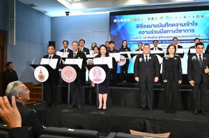 วันที่ 12 พฤศจิกายน 2568 ในโอกาสครบรอบ 40 ปี วันเจ้าหน้าที่ความปลอดภัยในการทำงาน (จป.) สถาบันส่งเสริมความปลอดภัย อาชีวอนามัย และสภาพแวดล้อมในการทำงาน (องค์การมหาชน) หรือ สสปท. ได้จัดให้มี พิธีลงนามบันทึกความเข้าใจความร่วมมือทางวิชาการ โดยมี ศาสตราจารย์ เภสัชกรหญิง ดร.พรอนงค์ อร่ามวิทย์ รองอธิการบดี ผู้แทนอธิการบดี จุฬาลงกรณ์มหาวิทยาลัย ซึ่งกำกับดูแลงานด้านความปลอดภัย อาชีวอนามัยและสภาพแวดล้อมในการทำงาน ร่วมลงนามบันทึกความเข้าใจความร่วมมือทางวิชาการ (MOU) เรื่อง “การสร้างความร่วมมือเพื่อความปลอดภัย: สถาบันการศึกษาสู่มาตรฐานความปลอดภัยที่ยั่งยืน” ภายใต้ “โครงการ จป.พันธุ์ใหม่ สู่วัฒนธรรมความปลอดภัยที่ยั่งยืน” ร่วมกับสถาบันการศึกษาจากทั่วประเทศ จำนวน 24 แห่ง ทั้งนี้ ศาสตราจารย์ ดร.ธีรยุทธ วิไลวัลย์ ผู้อำนวยการศูนย์ความปลอดภัย อาชีวอนามัยและสิ่งแวดล้อม จุฬาลงกรณ์มหาวิทยาลัย ได้ร่วมเป็นสักขีพยานในพิธีลงนามบันทึกความเข้าใจความร่วมมือทางวิชาการในครั้งนี้ ซึ่งจัดขึ้นที่ ห้องประชุม ชั้น 6 อาคาร DSD กรมพัฒนาฝีมือแรงงาน กรุงเทพมหานคร โดยโครงการดังกล่าว จัดขึ้นเพื่อมุ่งปลูกฝังจิตสำนึกด้านความปลอดภัยให้กับนิสิต นักศึกษา ในสถาบันการศึกษาทั่วประเทศไทย ให้มีการเตรียมความพร้อมสู่การเป็นแรงงานรุ่นใหม่ที่มีคุณภาพ มีทั้งความรู้ พร้อมทักษะ และทัศนคติที่ถูกต้องและปลอดภัยสำหรับการทำงานในอนาคต
