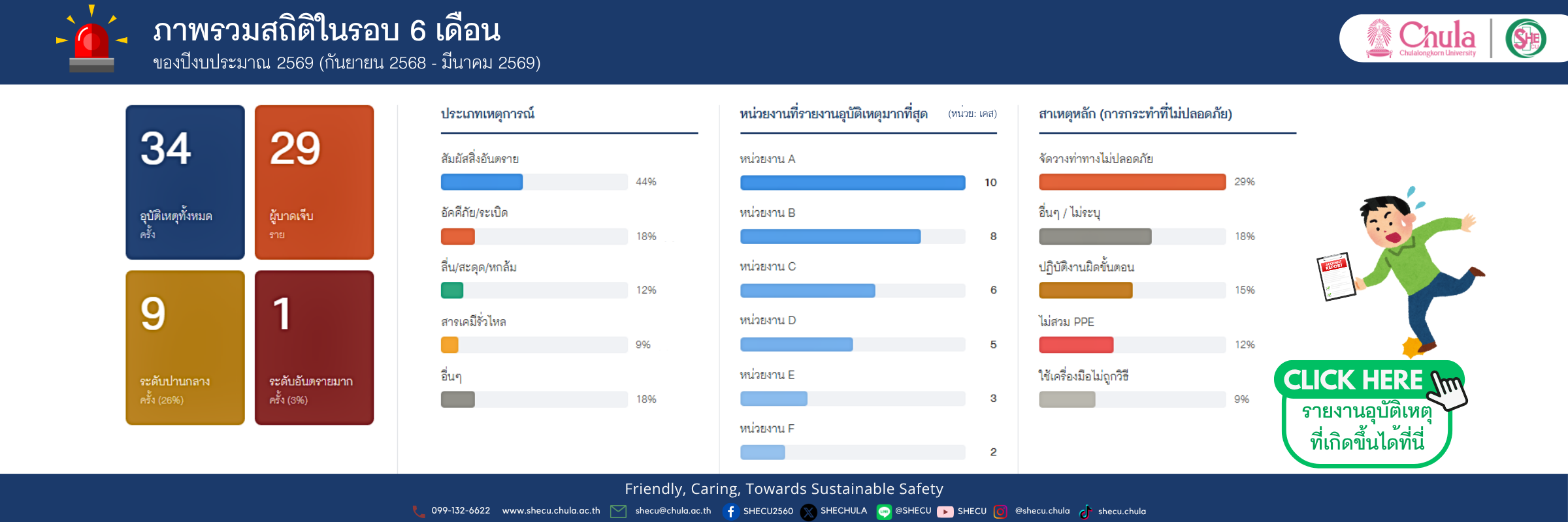 สรุปสถิติความปลอดภัย จุฬาลงกรณ์มหาวิทยาลัย (ต.ค.68 - ก.ย. 69)