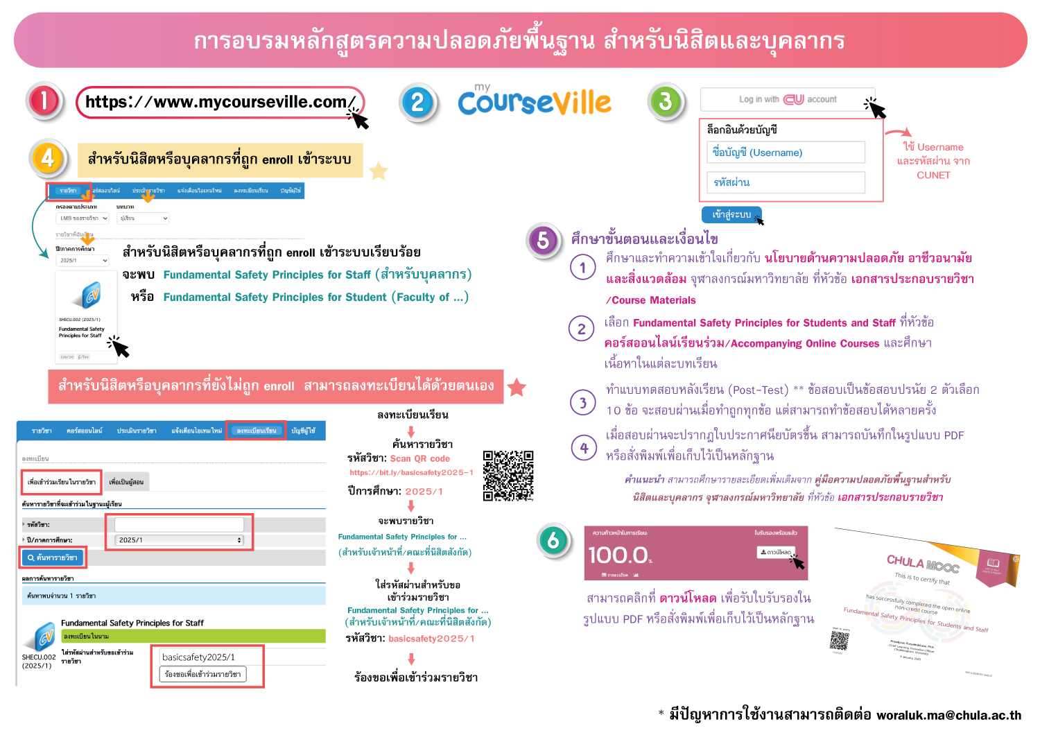 **ถ้านิสิต/บุคลากร เคยผ่านการอบรม "หลักสูตรความปลอดภัยพื้นฐาน สำหรับนิสิตและบุคลากร" ผ่านระบบ Blackboard (BB) หรือ MOOC ของมหาวิทยาลัยมาแล้ว ไม่จำเป็นต้องอบรมซ้ำ
